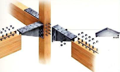 板銷連接:用板片狀硬木銷阻止被拼合構(gòu)件的相對移動,板銷主要在順紋受彎條件下傳力,具有較高的承載能力,故應(yīng)注意使其木紋垂直于拼合縫。